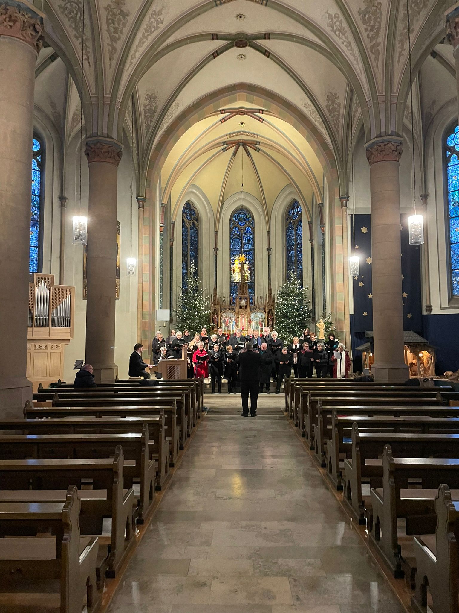 Rund 70 Besucherinnen und Besucher erlebten ein stimmungsvolles Weihnachtskonzert mit den Kindern und Jugendlichen der Dekanatssingschule, dem Kirchenchor sowie dem Projektchor Canticorum. Auf dem Programm standen Werke verschiedener Komponisten sowie bekannte Melodien aus Frankreich und England. Ergänzt wurde das Repertoire mit Gesängen des ganzen Publikums.