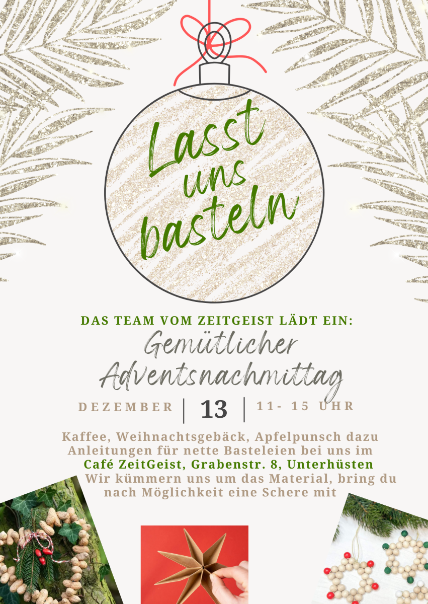 Wir machen es uns gemeinsam gemütlich und am Ende, so hoffen wir. konnten wir für ein paar Stunden der vorweihnachtlichen Hektik entfliehen und ein paar hübsche Kleinigkeiten für den Weihnachtsbaum, die Wohnung, den Balkon gestalten. Nach Möglichkeit solltet ihr eine Schere mitbringen.