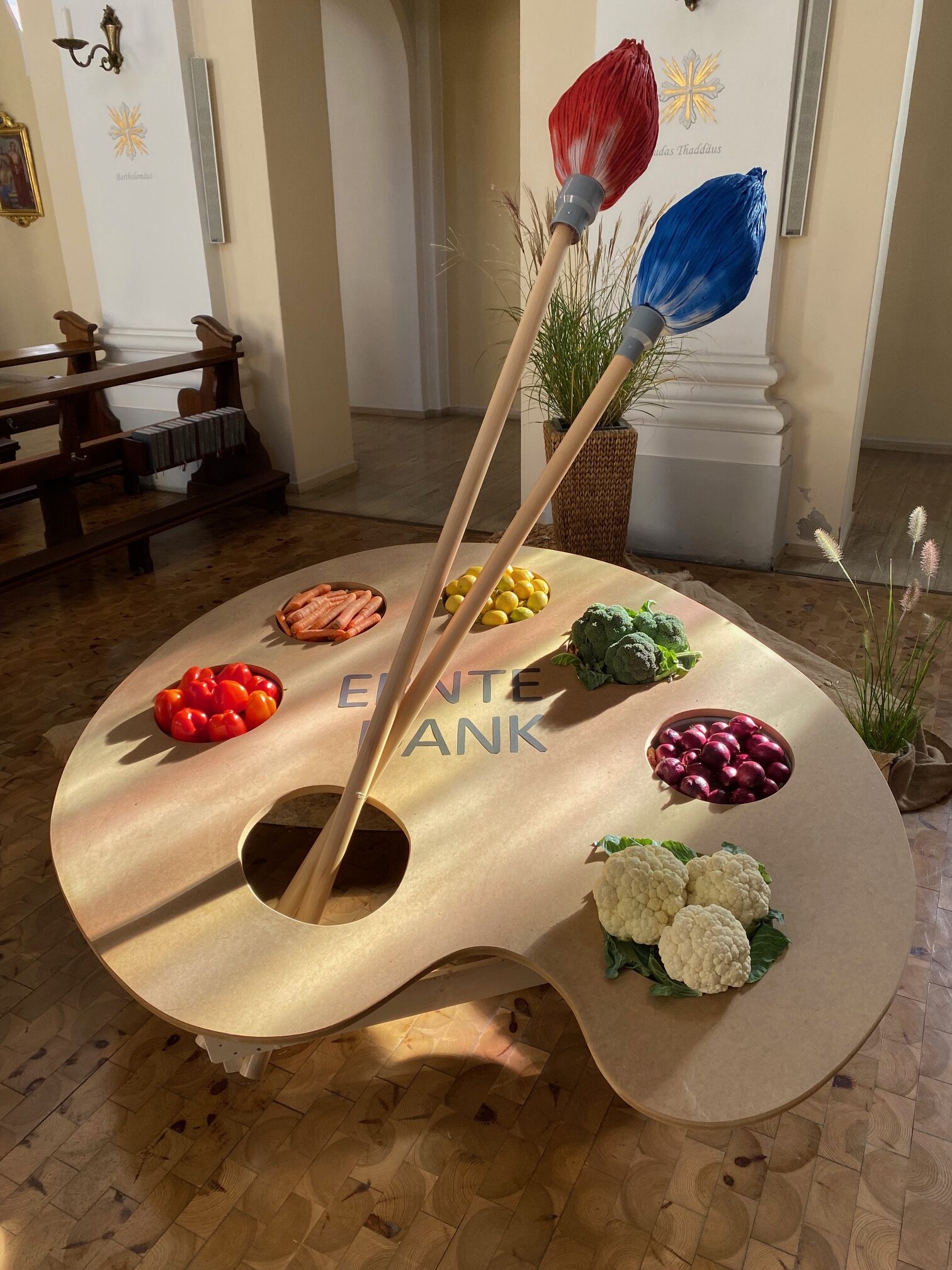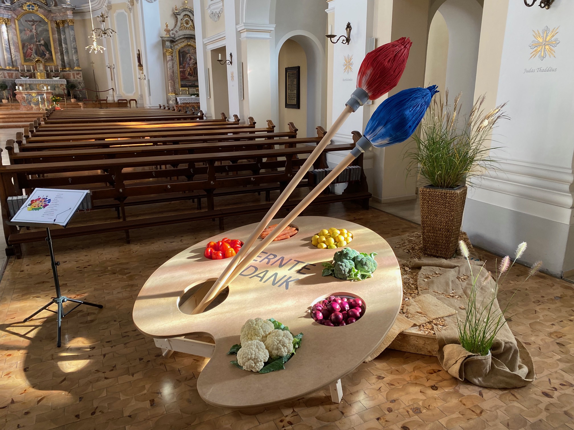 So lädt die Offene Kirche Bruchhausen in diesem Jahr große und kleine Besucher ein, die bunte Vielfalt an Obst und Gemüse aus Gottes Garten, inszeniert in einer großen Malerpalette einmal besonders zu betrachten. Texte und Gebete und Besinnliches auch zum Mitnehmen warten ebenfalls auf alle Besucher.