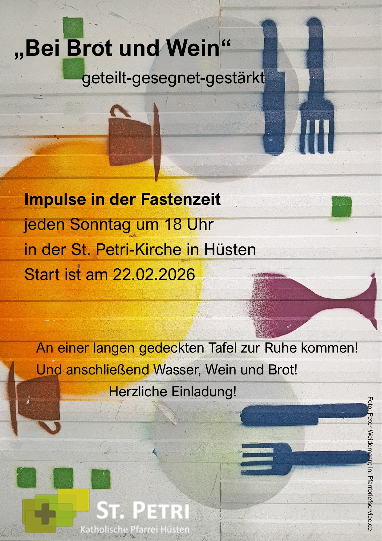 Verschiedene Impulse in der Fastenzeit laden jeden Sonntag ein, an einer einfachen Tafel Platz zu nehmen, um im Sinne einer Agape den Sonntag zu beschließen.
